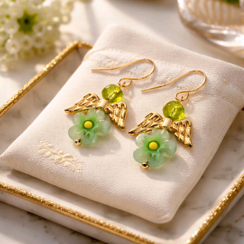 Green Glass Angel Earrings