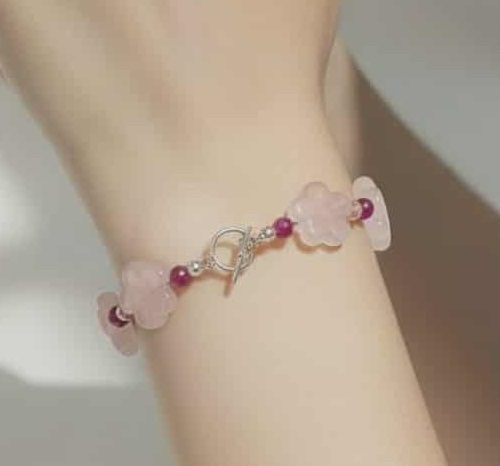 LJGB77 Pink Quartz Flowered Beaded Bracelet.