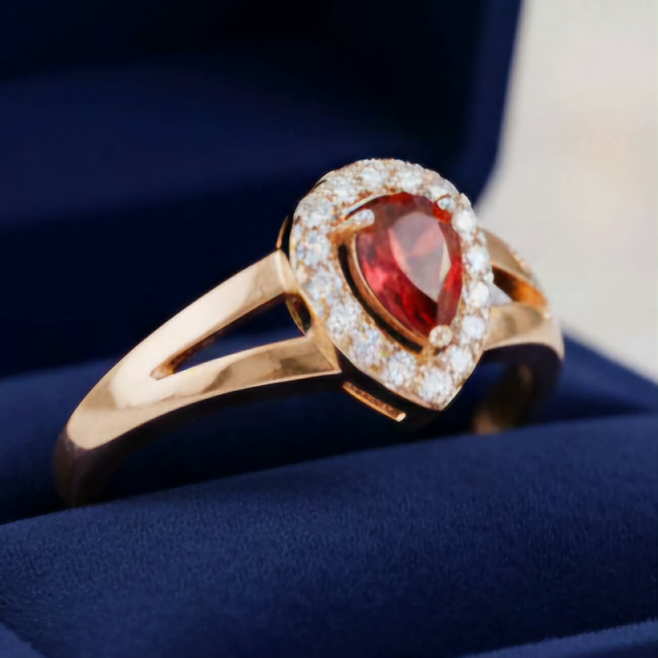 LJPR596 Red Glass Crystal Tear Drop Ring
