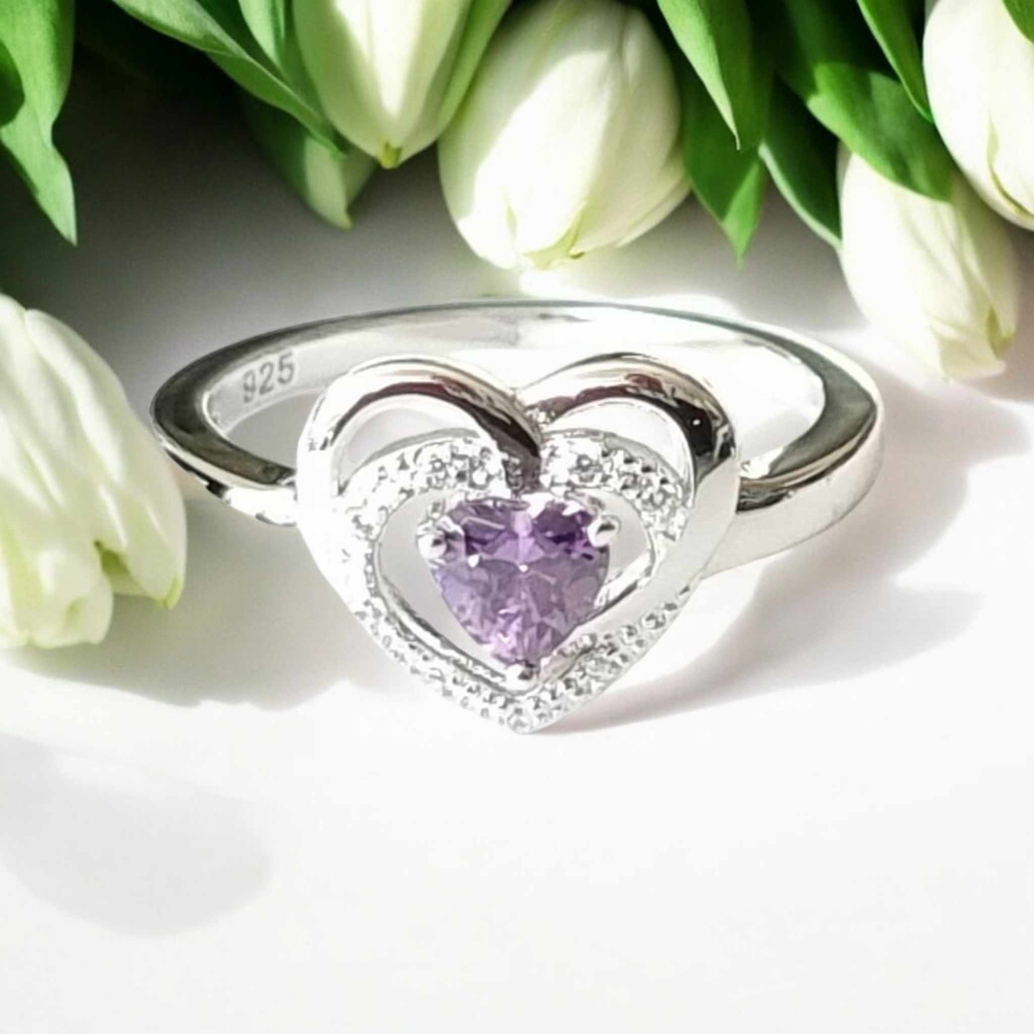 LJSSR87 Sterling Silver Purple Man Made Diamond Heart Ring